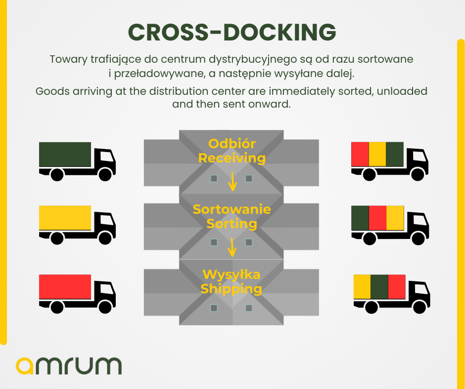 Dodatkowo, produkty szybko rotujące się (takie jak żywność, napoje) idealnie nadają się do cross-dockingu, ponieważ nie wymagają długiego przechowywania, a skrócenie czasu dostawy minimalizuje ryzyko przeterminowania.